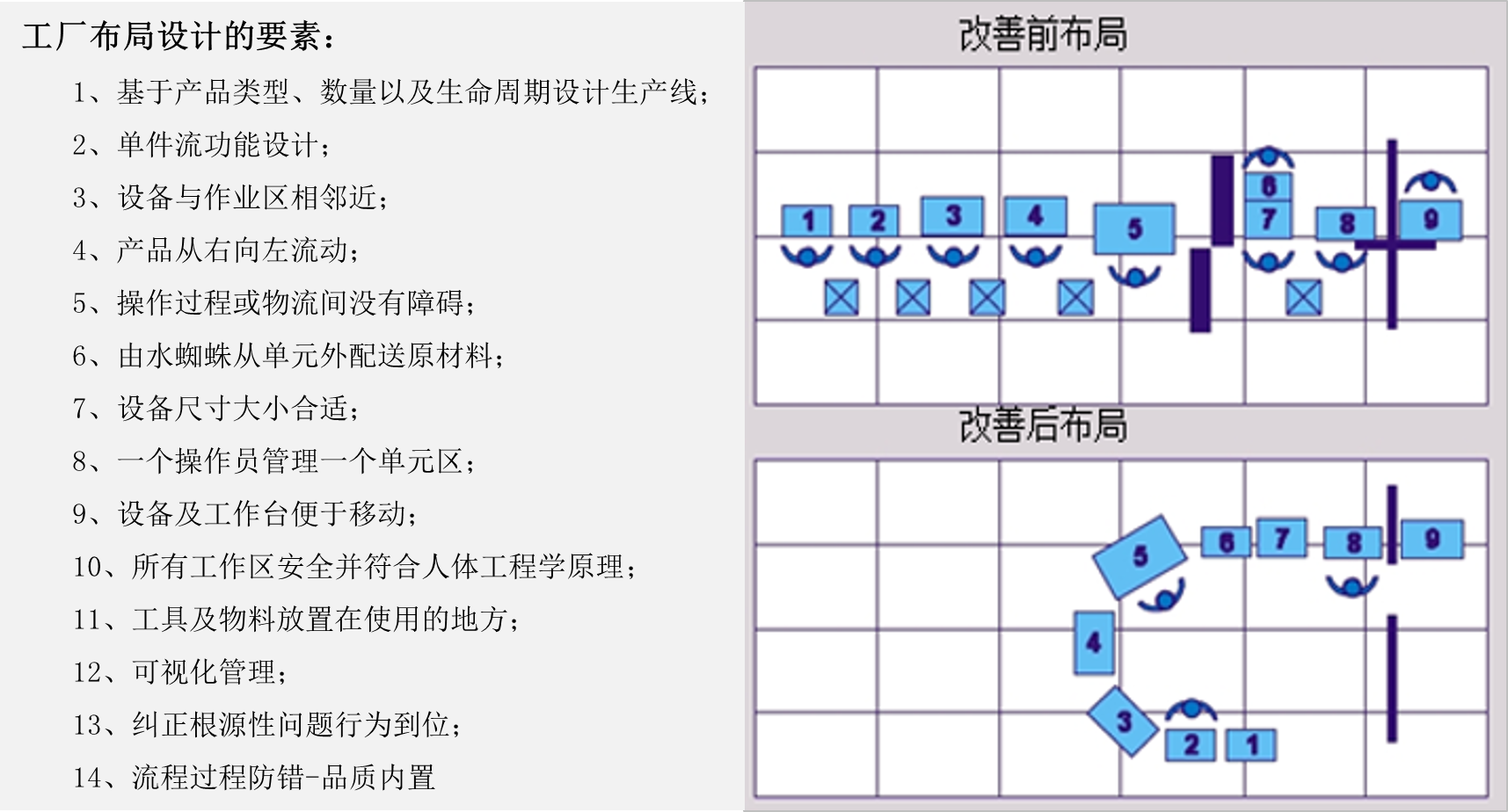 如果企業在工廠初期設計和新建階段未全面考慮工廠的整體布局、産線設計、物流配送和過程管理等因素,就會導緻新工廠在投産後出現設備(bèi)利用率低、工廠産能對未來需求變(biàn)動的适用性和作業效率低下等現象,如果企業能在設計階段導(dǎo)入精益原則,就可以避免大部分設計内置的浪費(fèi)。