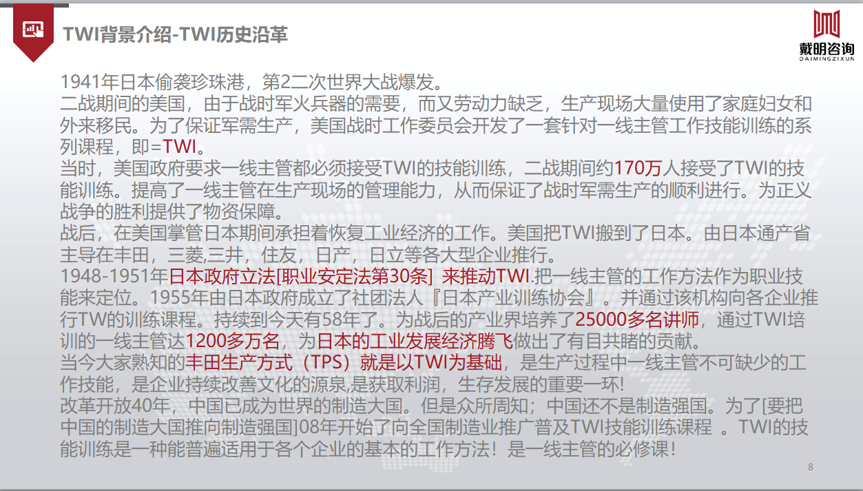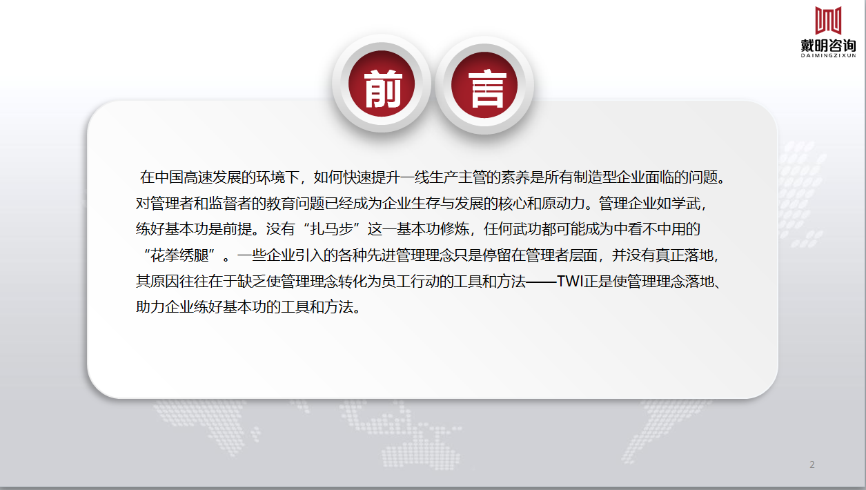 TWI  一線主管技能訓練(liàn)介紹(shào)