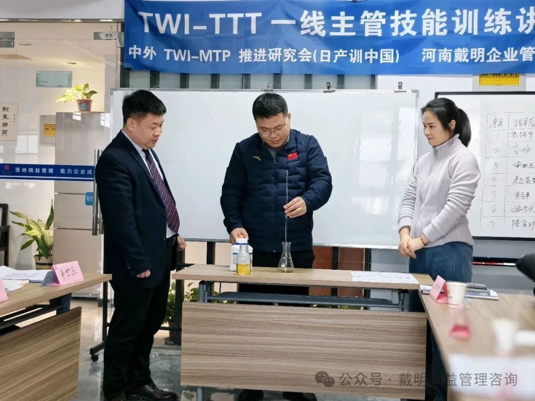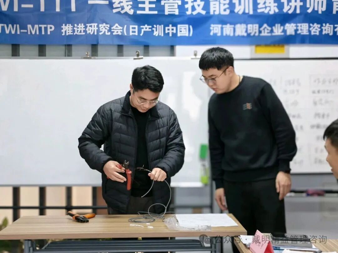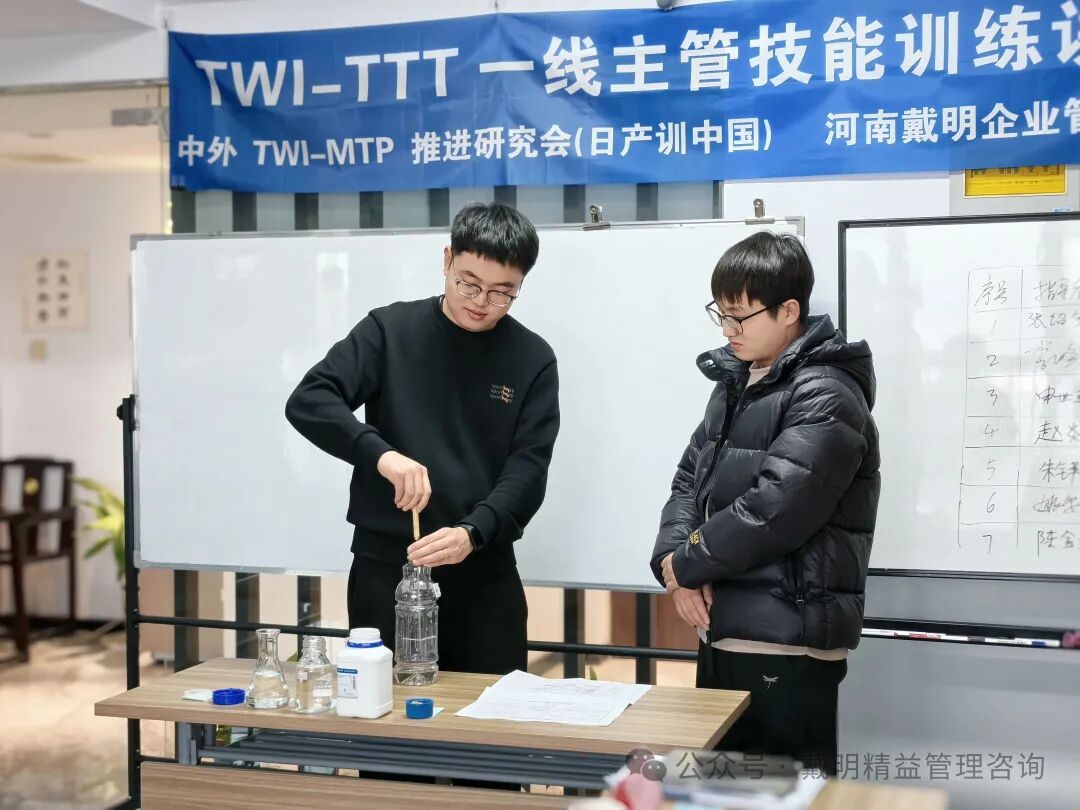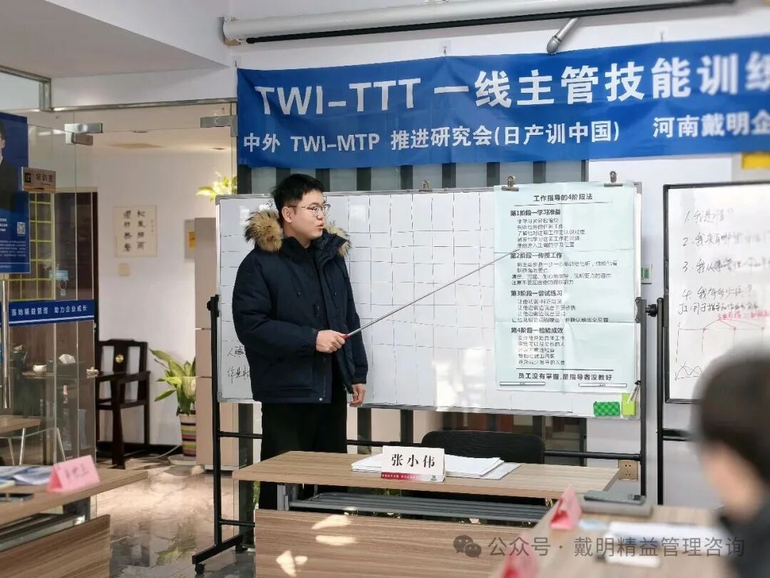 今天,本期TWI-JI一線主管工作指導技能實戰訓練營圓滿收官。兩天訓練從(cóng)“方法認知”到“現場(chǎng)實戰”,最終把一線主管最關鍵的能力——工作指導,訓練成一套可複制、可檢查、可落地的标準化技能。      第二天早上,我們以卡片複習開場(chǎng),由學員領讀,對齊關鍵語言和步驟節奏。看似是複習,實則是在“統一标準”:語言一緻、動作一緻,帶(dài)教才可能一緻;帶(dài)教一緻,訓練結果才更可能穩定。